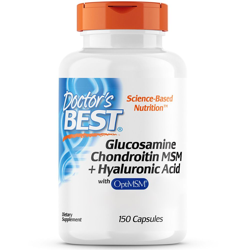 When you buy Doctor’s Best Glucosamine Chondroitin MSM + Hyaluronic Acid, you receive 150 capsules with the proven ingredients glucosamine, chondroitin, MSM and hyaluronic acid. 1000 mg chondroitin sulphate, 1500 mg glucosamine sulphate, 1000 mg OptiMSM® methylsulphonylmethane and 1000 mg BioCell Collagen® per dosage.