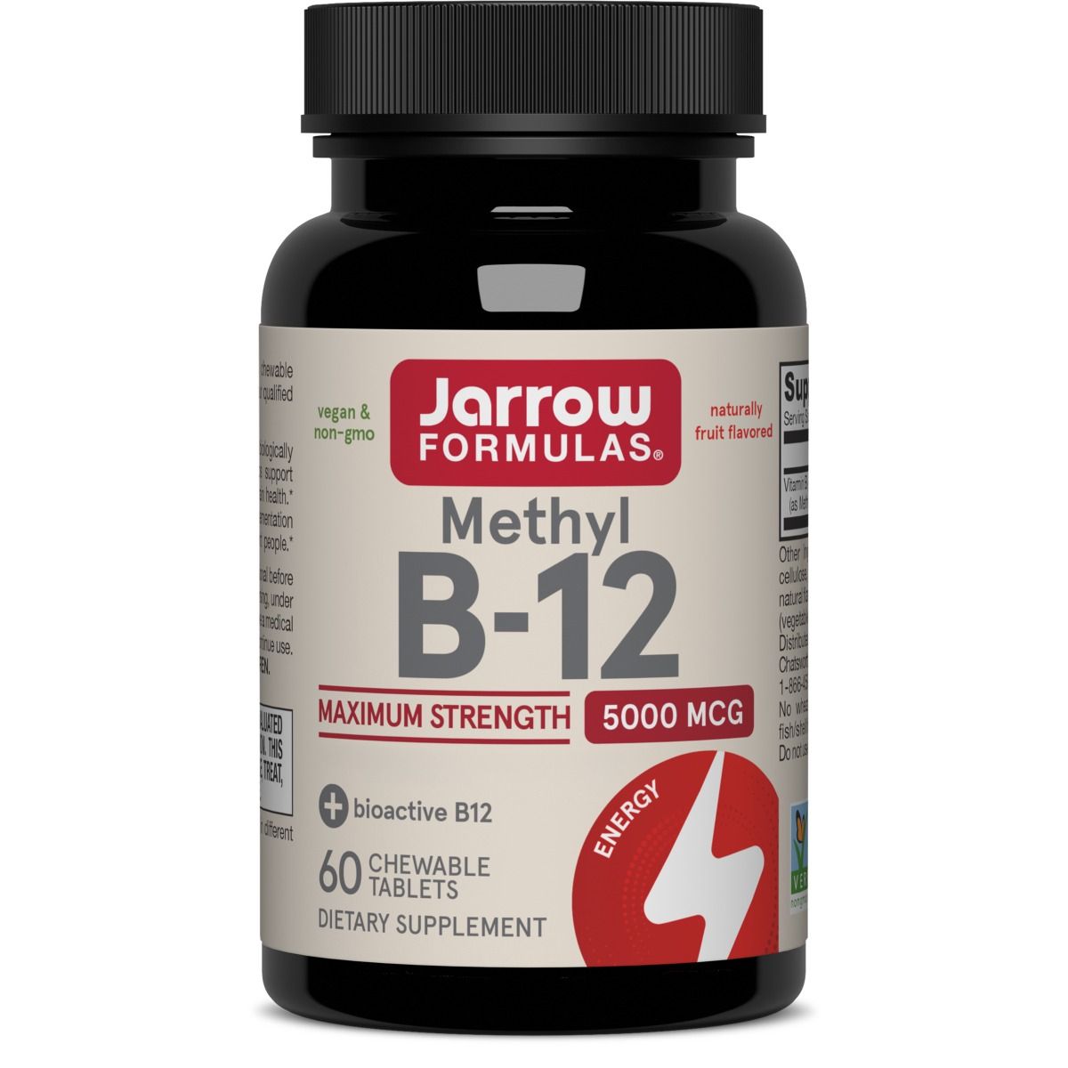 With one tin of Jarrow Formulas Methyl B-12 you get 100 cherry-flavored methylcobalamin lozenges . One lozenge of Jarrow Formulas Methyl B-12 contains a dosage of 500 mcg methylcobalamin (vitamin B12).